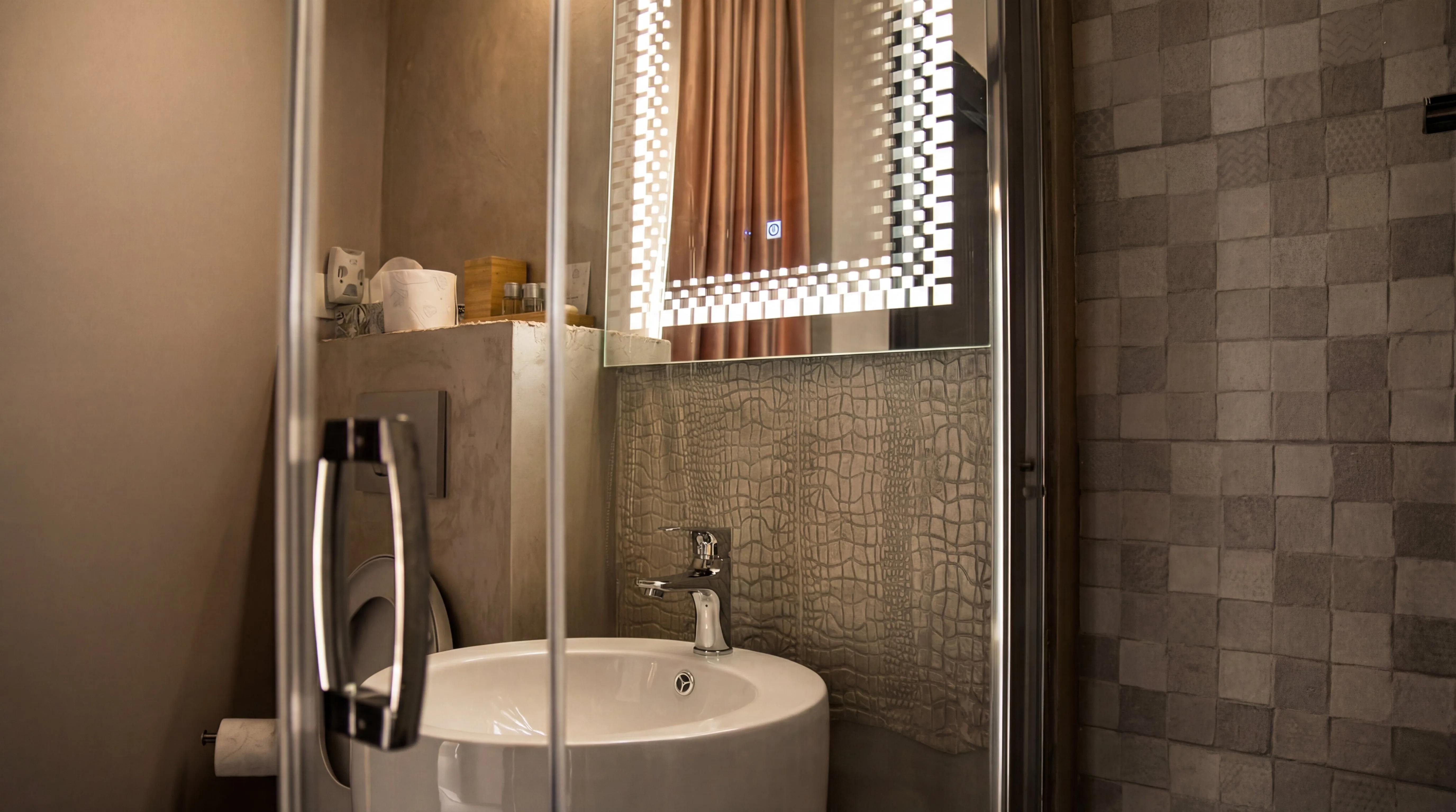 Baie privată modernă, cu duș și articole de toaletă incluse.