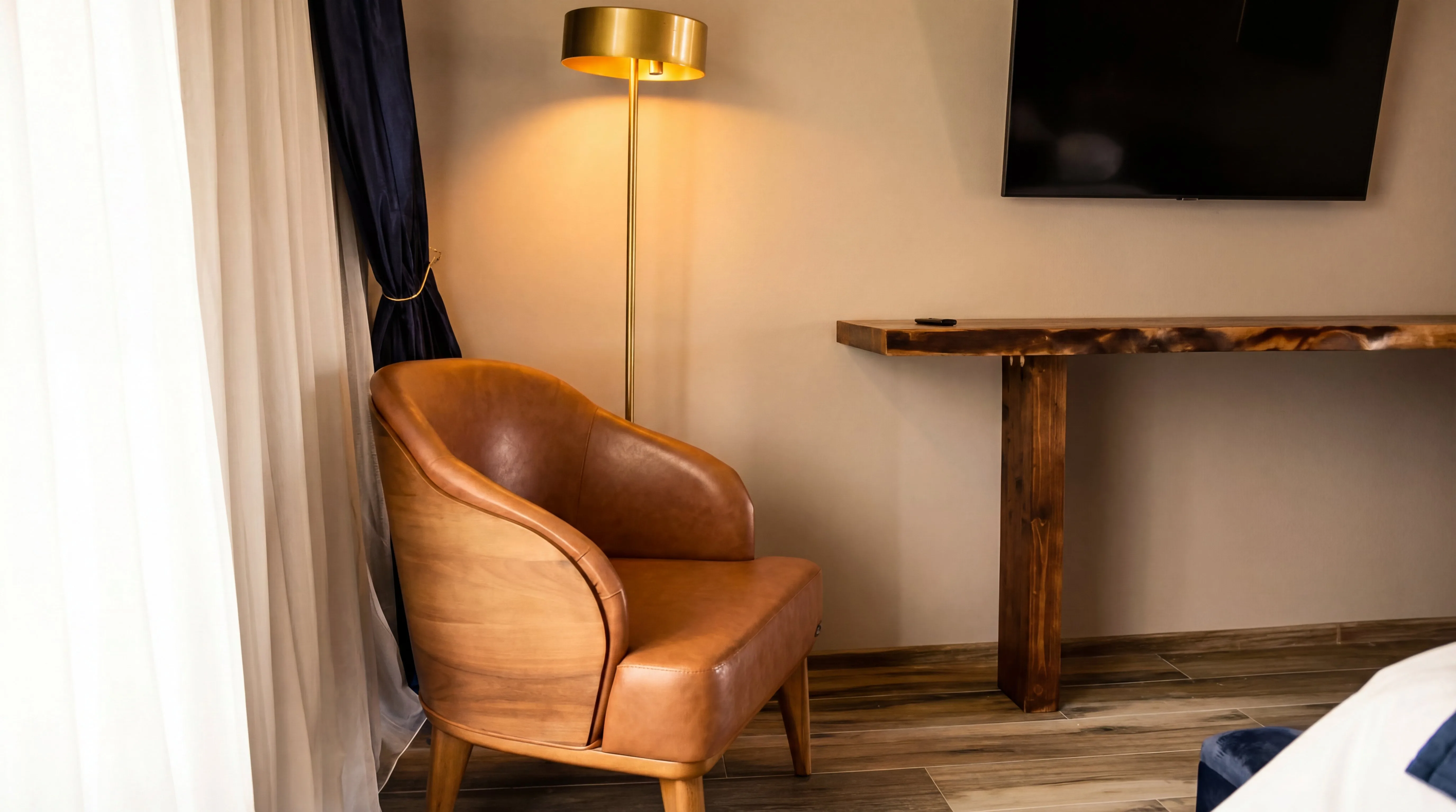 Materiale naturale și cromatică calmă pentru o atmosferă relaxantă.